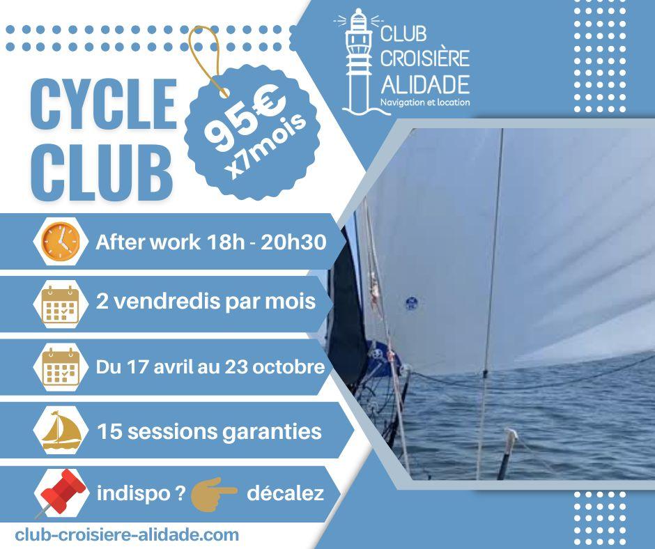 Le Cycle Club se compose de 15 sessions de navigation, organisées deux vendredis par mois,.